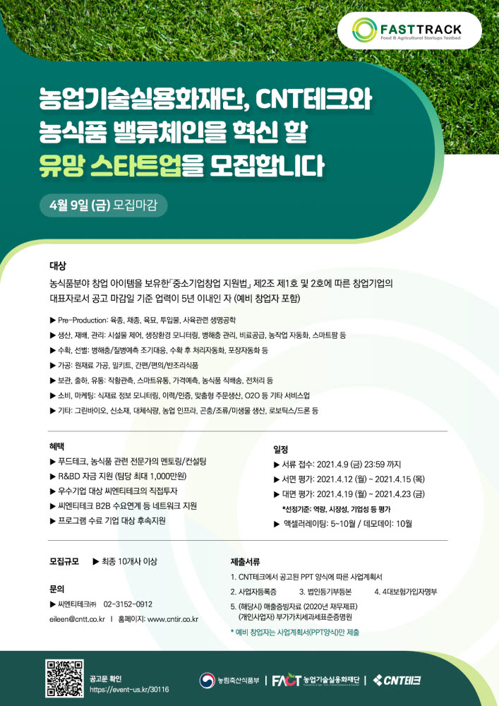| CNT테크, 'FAST Track by CNT TECH' 참여 스타트업 모집 | 2021-03-29 |